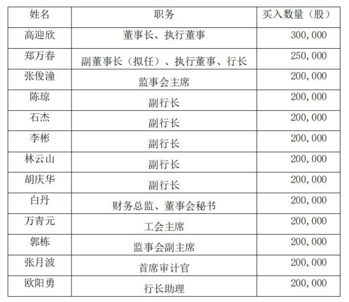 12月23日晚,民生银行(行情600016,诊股)发布公告称,董事长高迎欣、行长郑万春、副行长陈琼等13名高级管理人员,于12月23日以自有资金买入公司H股普通股股票,成交价格区间为每股港币4.18元至4.30元,合计买入275万股,耗资约1150万港元。13名高管承诺,将所购股票自买入之日起锁定两年。值得注意的是,郑万春副董事长任职资格尚待中国银行(行情601988,诊股)保险监督管理委员会核准,任职自核准之日起生效。