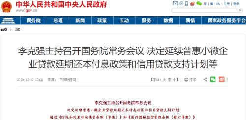 中央经济工作会议定调“宏观政策保持政策连续性、稳定性、可持续性”后,一些具体举措正逐步落地。 据中国政府网消息,国务院总理李克强12月21日主持召开国务院常务会议,决定延续普惠小微企业贷款延期还本付息政策和信用贷款支持计划,通过《防范和处置非法集资条例(草案)》和《医疗器械监督管理条例(修订草案)》。 本次国常会的要点主要如下: 一是适当延长普惠小微企业贷款延期还本付息政策,做到按市场化原则应延尽延,由银行和企业自主协商确定。 二是对适当延长央行此前推出的两项直达实体经济的货币政策工具,即对办理贷款延期还本付息地方法人银行和符合条件的的地方法人银行发放普惠小微企业信用贷款,适当延长对地方法人银行的资金支持。 三是会议通过《防范和处置非法集资条例(草案)》,规定省级政府对本行政区域内防范和处置非法集资工作负总责,明确地方各级政府、行业主管部门、监管部门职责分工,在市场主体登记、互联网管理、广告和资金监测等方面完善防范机制,规定了调查处置中强制措施,强化监管问责。 四是会议通过《医疗器械监督管理条例(修订草案)》,充实监管手段,增设产品唯一标识追溯、延伸检查等监管措施,加大违法行为惩处力度等。 延长多项小微金融支持政策 会议指出,按照党中央、国务院部署,今年为加大金融对实体经济支持,特别是帮助小微企业渡过难关,有关部门出台了两项直达货币政策工具:即对地方法人银行实行普惠小微企业贷款阶段性延期还本付息予以一定激励,并对地方法人银行发放普惠小微企业信用贷款提供优惠资金支持。政策实施取得显著效果,惠及小微企业310多万户,对缓解企业资金压力、保市场主体保居民就业发挥了积极作用。 “当前经济运行逐步恢复正常,但对小微企业生产经营面临的特殊困难仍需加以帮扶。为贯彻落实中央经济工作会议精神,努力保持经济运行在合理区间,要保持政策连续性、稳定性和可持续性,做好政策接续和合理调整,激发市场主体活力,稳定市场预期。”会议指出。 会议确定: 一是明年一季度要继续落实好原定的普惠小微企业贷款延期还本付息政策,在此基础上适当延长政策期限,做到按市场化原则应延尽延,由银行和企业自主协商确定。对办理贷款延期还本付息且期限不少于6个月的地方法人银行,继续按贷款本金1%给予激励。 二是将普惠小微企业信用贷款支持计划实施期限由今年底适当延长。对符合条件的地方法人银行发放普惠小微企业信用贷款,继续按贷款本金40%给予优惠资金支持。 “实施好和适当延长上述直达货币政策工具,有利于帮助小微企业更好应对国内外环境变化,实现生产经营稳定恢复。”会议称。 民生银行(行情600016,诊股)首席研究员温彬表示,明年外部环境还存在很大的不稳定和不确定性,我国经济复苏的基础还不稳固,特别对于小微企业等经济薄弱领域,还需加大支持力度。因此,适当延长普惠小微企业贷款延期还本付息政策期限,有助于小微企业更好地渡过难关难关,强化稳健经营,这有助于进一步实现保市场主体、保就业的政策目标。同时,将普惠小微企业信用贷款支持计划实施期限由今年底适当延长,有助于降低中小银行的资金成本,提高中小银行支持小微企业的积极性,从而进一步提高小微企业贷款中信用贷款的占比,并进一步降低小微企业融资成本。 英大证券研究所所长郑后成对证券时报·券商中国记者表示,延续对小微企业的金融支持政策,是贯彻执行中央经济工作会议所提出的“宏观政策要保持连续性、稳定性、可持续性”、“政策操作上要更加精准有效,不急转弯”等要求。此外,明年是“十四五”开局之年,对于稳增长有较为迫切的需求,而小微企业由于风险承受能力弱,是“稳增长”的短板。 “延续对小微企业的金融支持政策,将对新发展格局形成重要支撑。”郑后成称,小微企业是容纳就业的主力军,有利于促进就业,进而扩大消费,形成强大国内市场,拉动“国内大循环”。与此同时,部分小微企业处于出口产业链上,通过延续普惠小微企业贷款延期还本付息政策和信用贷款支持计划,保住这部分小微企业,能够有效推动“国内国际双循环相互促进”。 加强对非法集资打击力度 本次会议还通过了《防范和处置非法集资条例(草案)》,会议强调,要用法治的办法加强重点领域监管,防范和化解风险,保护群众合法权益。 《防范和处置非法集资条例(草案)》规定,省级政府对本行政区域内防范和处置非法集资工作负总责,明确地方各级政府、行业主管部门、监管部门职责分工,在市场主体登记、互联网管理、广告和资金监测等方面完善防范机制,规定了调查处置中强制措施,强化监管问责。 此外,草案对非法集资的行政、刑事责任和资金清退、非法集资参与人应承担的后果等作了严格规定。草案还规定地方各级政府、金融机构等要加强对防范非法集资的宣传教育,增强社会公众对非法集资防范意识和识别能力。 今年4月处置非法集资部际联席会议在京召开时就提出,加快推动《防范和处置非法集资条例》出台。不断健全执法机制,加快构建行政处置与司法打击并重并举、有机衔接的新格局。 此外,会议还指出,医疗器械事关人民群众身体健康和生命安全,必须实行最严格的监管。会议通过《医疗器械监督管理条