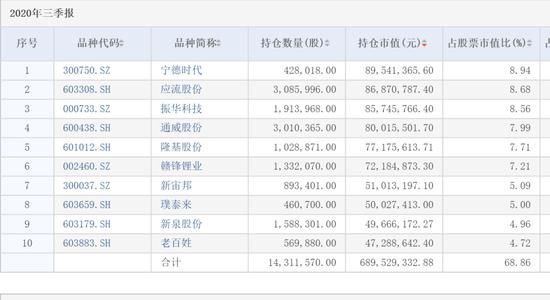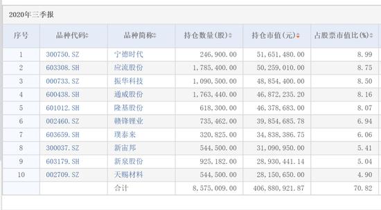 记者梳理农银汇理工业4.0、农银汇理新能源主题和农银汇理研究精选这三只基金三季度重仓股发现,有8只重仓股重合,分别为宁德时代(行情300750,诊股)、应流股份(行情603308,诊股)、振华科技(行情000733,诊股)、通威股份(行情600438,诊股)、隆基股份(行情601012,诊股)、赣锋锂业(行情002460,诊股)、新宙邦(行情300037,诊股)和璞泰来(行情603659,诊股)。