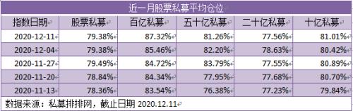 分规模来看,截至12月21日,百亿级私募的平均仓位高达87.32%,其中73.98%的百亿级私募仓位超过8成,仅3.38%的百亿私募仓位低于5成。