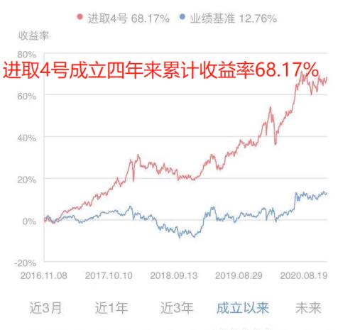我们以进取4号为例,自成立四年来至今收益率高达68.17%,远超同期业绩比较基准。