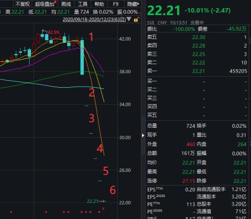 半年后的12月16日,12月17日,12月18日,12月21日,12月22日,12月23日,公司股价又是突然连续收了6个跌停。