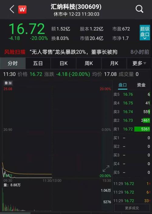结果更郁闷的是,12月23日,森林包装直接以跌停板开盘,虽然今早反复在跌停价上摩擦,但是最后还是被摁在了跌停板上。
