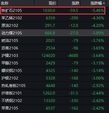 今天国内的期货市场一片绿油油。其中,铁矿石早盘一度暴跌超9%,跌穿1000元。但是由于铁矿石现货价格仍然居高不下,截至发稿,铁矿石跌幅收窄至5.46%。