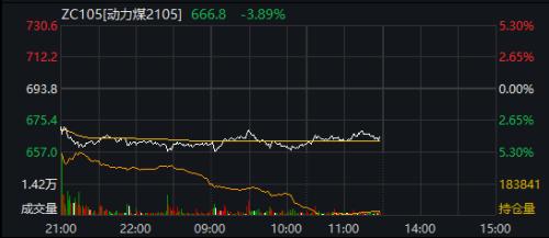 昨天跌停的动力煤今天继续延续跌势。早盘一度跌超5%,截至发稿,下跌近4%。