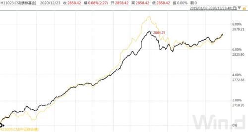 数据显示,2019年以来,股票基金指数和混合基金指数的表现要远远好于沪深300。而同期债券基金指数对中证综合债指数并没有展现太多优势。