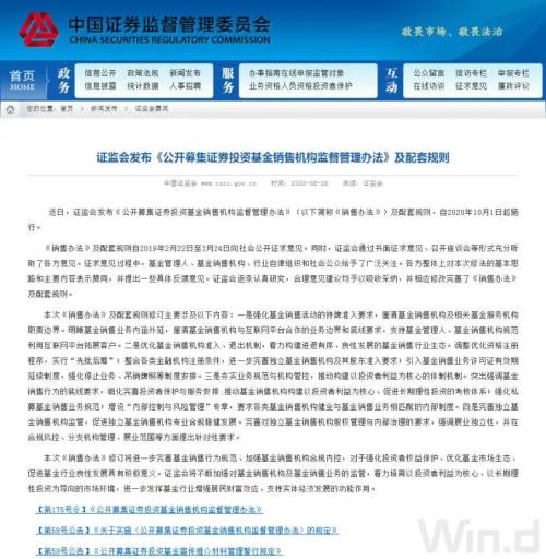 2020年8月28日,证监会发布《公开募集证券投资基金销售机构监督管理办法》及配套规则,于2020年10月1日起施行。明确规定基金销售机构可以与基金管理人约定以其销售形成的基金保有量提取一定比例的客户维护费(俗称的尾佣、后端分成),但需满足规定。