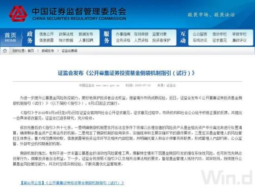 2020年7月31日,证监会发布《公开募集证券投资基金运作指引第3号———指数基金指引(征求意见稿)》。内容包括强化基金管理人专业胜任能力要求、加强标的指数质量管理、严格规范指数基金投资运作、标的指数许可使用费由管理人承担、信息披露明确指数编制方法、持有人利益优先原则等六大要点。